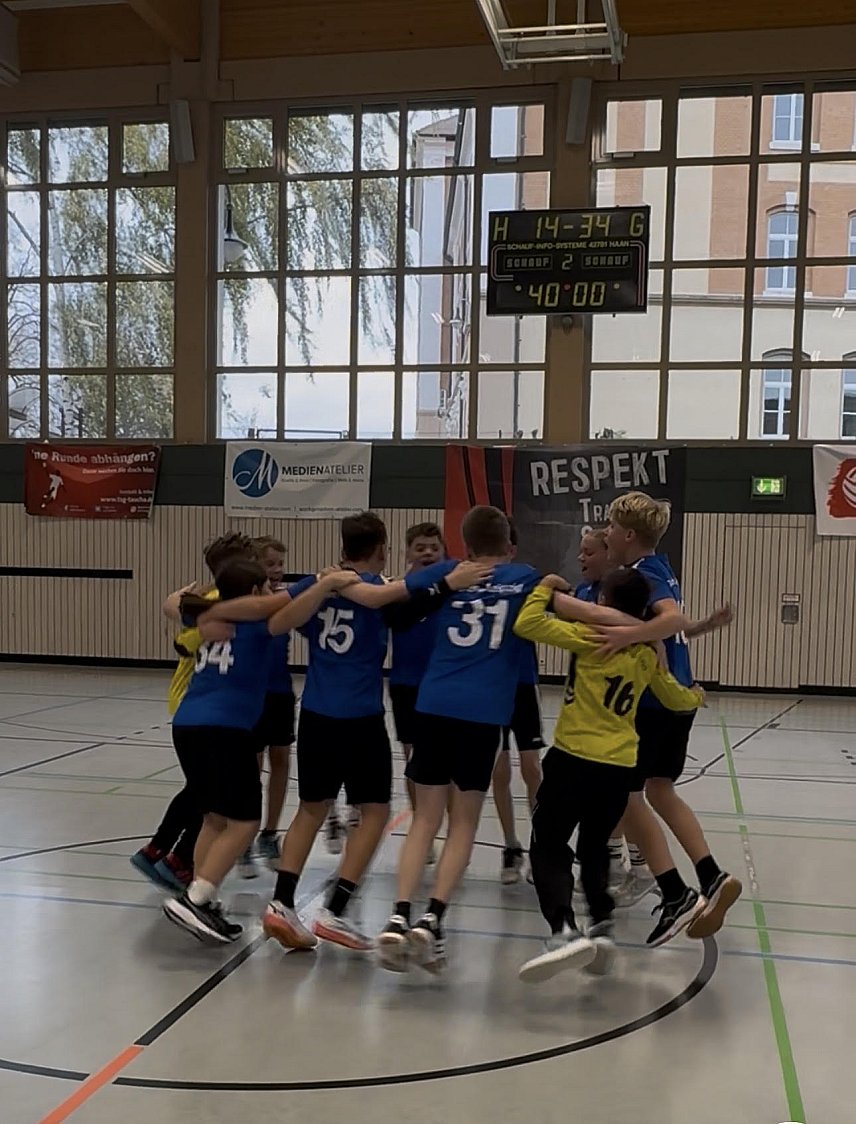 Das dritte Spiel der Saison ist "in den Büchern" und mit einer souveränen Mannschaftsleistung hat das Team einen 14:34 Sieg eingefahren. Von Beginn an konnten wir mit unseren offensiven Abwehr die Mädels und Jungs aus Taucha vor große Probleme stellen. Bereits zur Halbzeitpause hatten wir die 10:18 Führung herausgespielt und konnten in der zweiten Halbzeit durch unsere konsequente Abwehr noch weniger Gegentore zulassen. Das 30. Tor und der damit verbundene Kuchen zum nächsten Heimspiel kam von Michel.